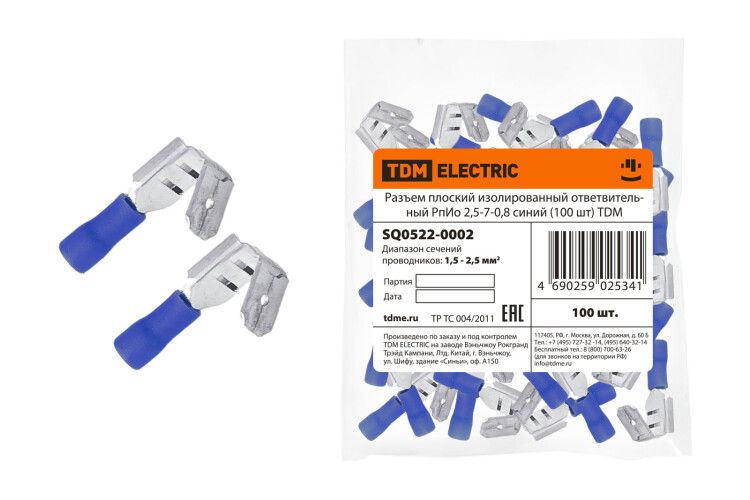 | Разъем плоский изолированный ответвительный РпИо 2,5-7-0,8 синий (100 шт) | SQ0522-0002 | TDM | 13.03.2026 | Под заказ | 378,43 ₽ | уп. | от 30 дней |