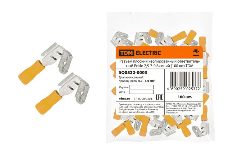 | Разъем плоский изолированный ответвительный РпИо 6,0-7-0,8 желтый (100 шт) | SQ0522-0003 | TDM | 13.03.2026 | Под заказ | 484,7 ₽ | уп. | от 30 дней |