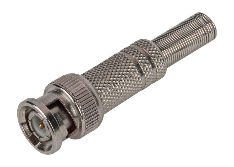 Разъем BNC штекер под винт с пружиной металл R-BNC01 применяется для соединения коаксиальных кабелей с волновым сопротивлением 50 и 75 Ом. Подходит для передачи аналогового видеосигнала в системах наблюдения, телевизионных сетях, измерительных приборах и других устройствах, где требуется качественный высокочастотный сигнал.