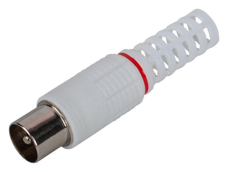 Разъем R-TV04 штекер TV без пайки цвет белый соответствует требованиям к импедансу 75 Ом, что обеспечивает минимальные потери сигнала в телевизионных системах. Материалы - термостойкий пластик и латунь с никелевым покрытием - безопасны для внутренней эксплуатации. Не предназначена для наружного монтажа без защиты от осадков.