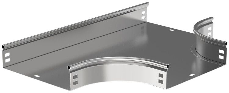 Разветвитель Т-образный плавный тип Г01 ESCA 80х300мм совместим с другими элементами серии ESCA того же размера (80×300 мм). Монтаж выполняется на опорные конструкции с помощью болтовых соединений. Интегрированный соединительный разъём позволяет легко фиксировать смежные участки лотка без дополнительных деталей. Для герметизации и безопасности необходимо использовать крышку - она не входит в комплект и приобретается отдельно.