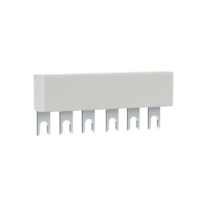 Шинная разводка dmp32cl45-2 совместима с автоматическими выключателями серии DMP32, DKC и YON, в том числе с YON pro. Установка происходит вдоль направляющих DIN-рейки. Разводка фиксируется на корпусе автоматов через специальные зацепы - никаких болтов или инструментов не требует. Подключение осуществляется вставкой выводов автомата в гнёзда разводки. Монтаж выполняется после установки обоих автоматов, перед подключением внешних проводов. Обязательно проверьте соответствие шага 45 мм - не подходит для автоматов с другим шагом (например, 17,5 мм).