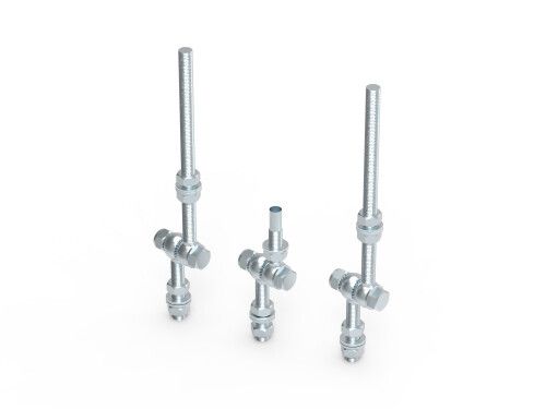Регулировочный комплект для молниеприемной мачты (5-7 м) DKC совместим с треногами и опорными конструкциями, имеющими отверстия под болты M16. Для монтажа необходимо: