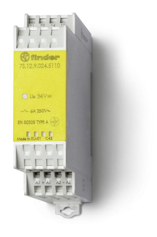 Реле безопасности модульное электромеханич. (реле с принудительным управлением контактами) 1NO+1NC 6А AgNi+Au 24В DC 22.5мм IP54 версия для ЖД-транспорта FINDER 7S1290245110T