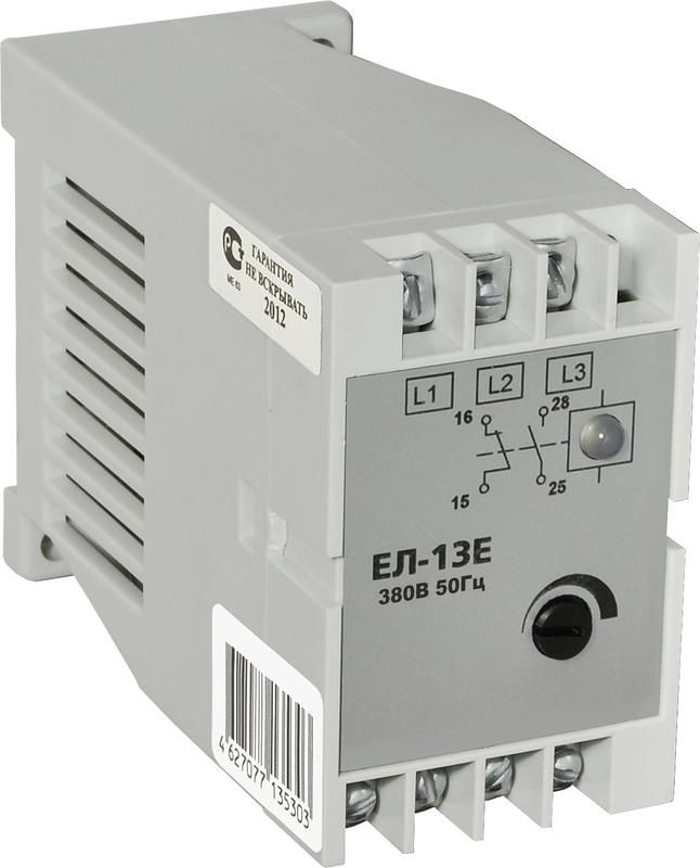 Реле контроля трехфазного напряжения ЕЛ-13Е 380В 50Гц задержка срабатывания 0.1-10с ток контактов исполнительного 5А 2п УХЛ4 и Автоматика A8222-77135303