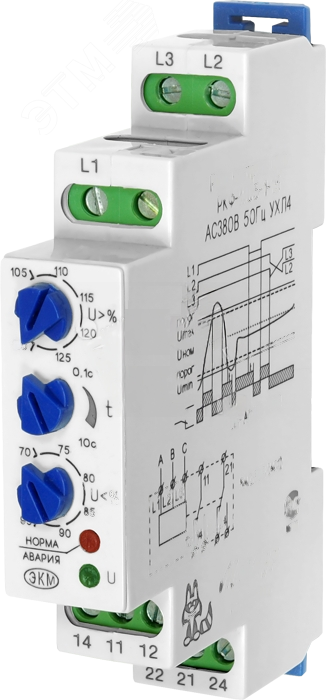- Тип: реле контроля фаз, 3-фазное
