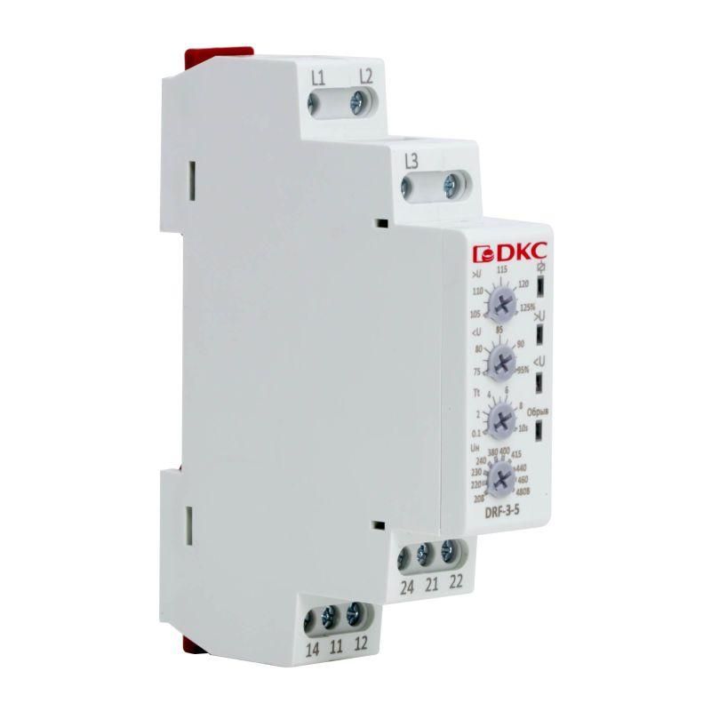 Реле контроля фаз, 3 фазы, тип DRF, контроль напряжения, обрыва конфигурация контакта 2CO, 208-480В | DRF-3-5 DKC ДКС