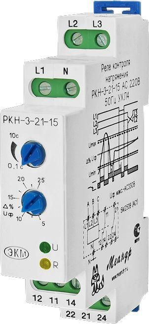 Реле контроля напряжения 3ф РКН-3-21-15 АС230В/AC400В УХЛ4 4-х проводн.схема вкл.; асимметр. регулир. порогов; задержка срабат. от 0.1...10с ток контактов исполнит.о 8А 2п Меандр A8302-16934065