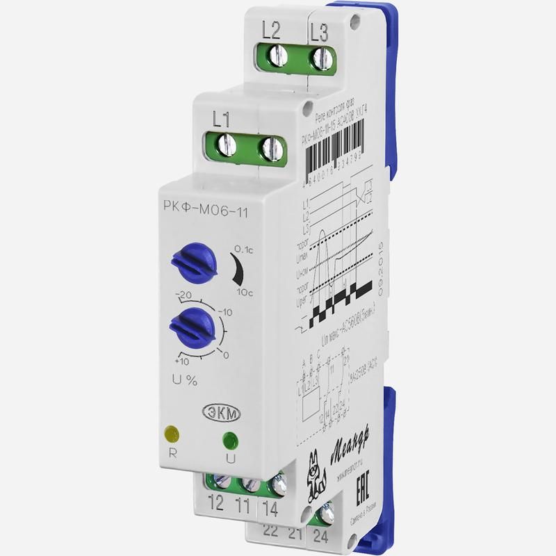 Реле контроля трехфазного линейного напряжения РКФ-М06-11-22 AC690В УХЛ4 (спец.) Меандр A8302-16936762