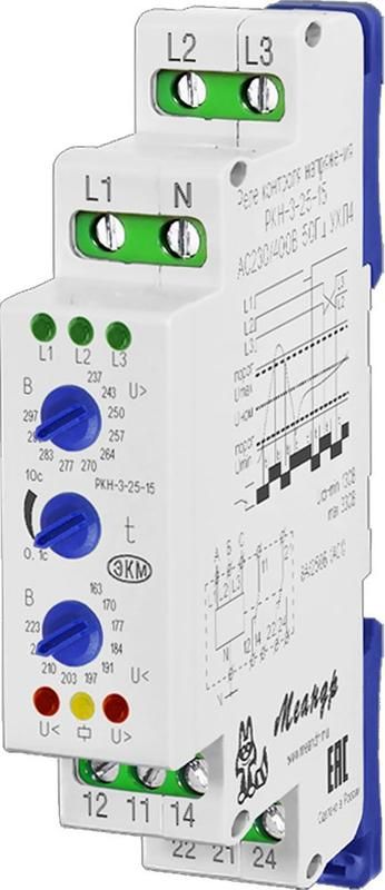 Реле контроля трехфазного напряжения РКН-3-25-15 AC230В/AC400B УХЛ2 (спец.) Меандр A8302-16934072 - это устройство, предназначенное для контроля трехфазного переменного напряжения.