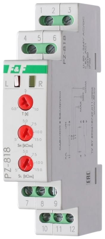 Реле уровня жидкости PZ-818 (двухуровн.; выбор режима работы; раздел. регулир. задержки переключ. по уровням; 1 модуль; датчик в комплекте PZ2 (3шт); монтаж на DIN-рейке) F&F EA08.001.008 Евроавтоматика