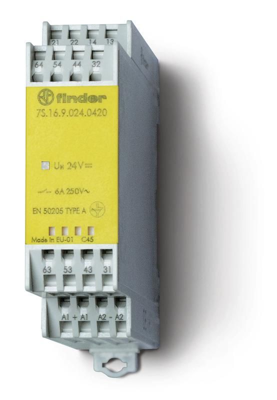 Модульное электромеханическое реле безопасности (реле с принудительным управлением контактами); 4NO+2NC 6A | 7S1690120420PAS Finder 7S.16.9.012.0420PAS
