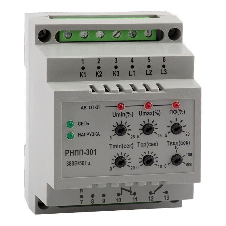 Реле контроля напряжения и фаз РНПП-301-У3 и РНПП-301-УХЛ3.1 предназначены для постоянного наблюдения за состоянием трёхфазной электрической сети. Они отслеживают уровень напряжения в каждой фазе, порядок чередования фаз и наличие всех трёх фаз. При выходе параметров за установленные пределы устройство отключает нагрузку. Как только параметры вернутся в норму - через заданную паузу оно снова включает питание. Это особенно важно в системах автоматического резервирования (АВР), на производствах с чувствительным оборудованием, в насосных станциях, конвейерах и других объектах, где перебои в питании могут вызвать аварию или простои.