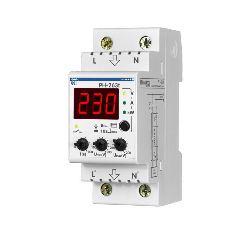 Реле напряжения РН-263Т 63А с термозащитой, ограничение тока, ( 2 DIN) - 3425600263т НовАтек-Электро