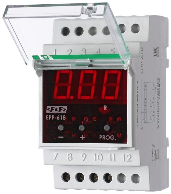 Реле тока EPP-618 (многофункциональное; диапазон контролируемых токов 0.5-50А (с внешними трансформаторами более до 999А); монтаж на DIN-рейке 35мм 150-250В AC 16А 1P IP20) F&F EA03.004.007 Евроавтоматика