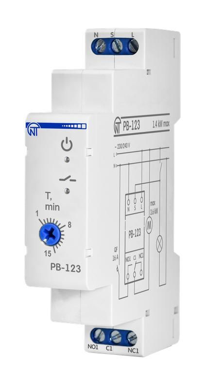 Реле времени для вентилятора РВ-123 одномодульное задержка отключения от 1 до 15 минут 220В НовАтек-Электро 3425601123