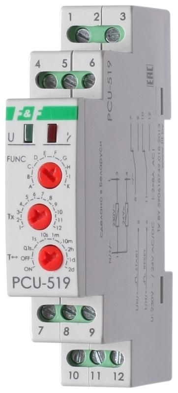 Реле времени PCU-519 (многофункц. с вход. START/RESET 230В AC-24В AC/DC 2х8А 2P IP20 монтаж на DIN-рейке) F&F EA02.001.023 Евроавтоматика