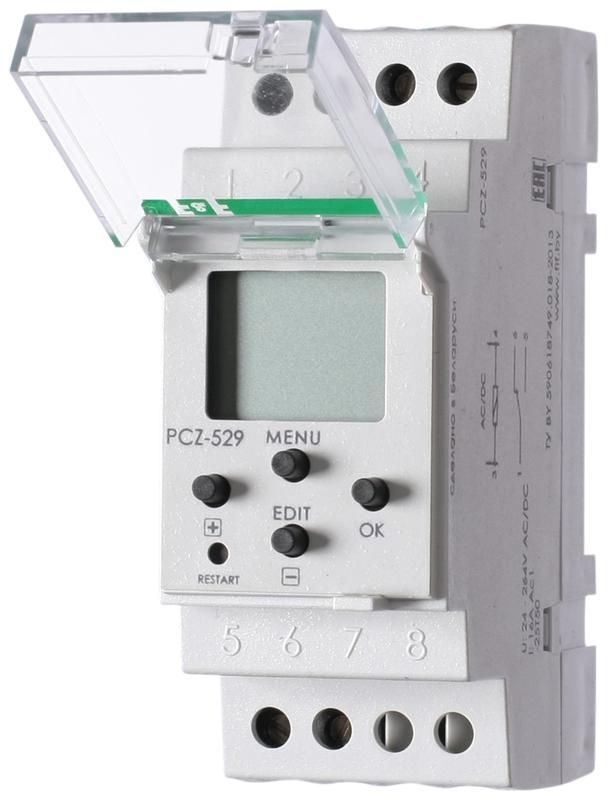 Реле времени PCZ-529 16А 24-264В AC/DC 1 перекл. IP20 годовое канал-100 пар включ./выключ. монтаж на DIN-рейке F&F EA02.002.007 Евроавтоматика