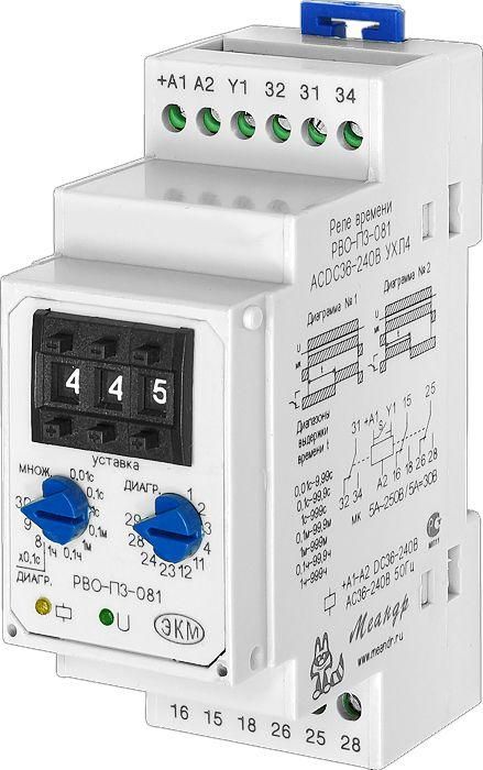 Реле времени РВО-П3-081 ACDC36-240В УХЛ4 14 диаграмм работы три декадных переключателя ток контактов исполнительного 8А 2п+1п мгновенный Меандр A8302-16936298