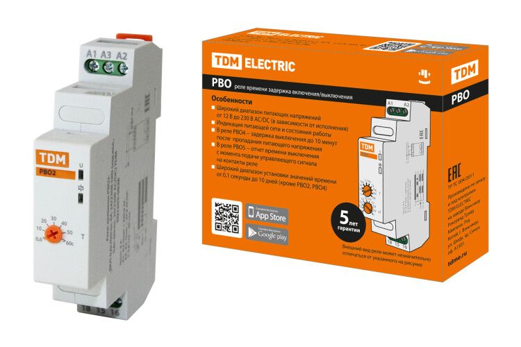 Реле времени РВО2-ВКЛ-0,6с/60сек-8А-24/230В-DIN (зад.вкл., 0,6с-60сек, 24/230В AC/DC) | SQ1503-0028 TDM