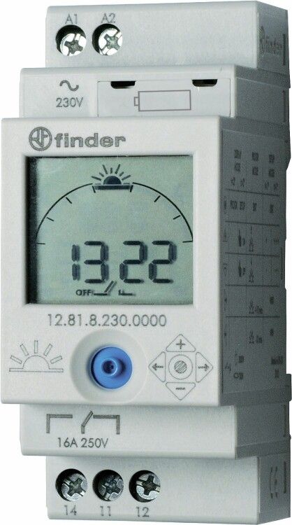 Реле времени цифровое ASTRO; монтаж на рейку 35мм; 1СO 16A; питание 110…230B AC/DC; ширина степень защиты IP20 | 128182300000 Finder 12.81.8.230.0000