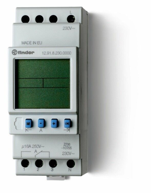 Реле времени цифровое ASTRO; монтаж на рейку 35мм; 1СO 16A; питание 230В АC; ширина 35.8мм; степень защиты IP20 | 129182300000 Finder 12.91.8.230.0000