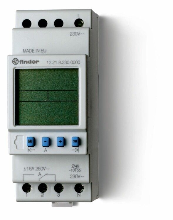 Реле времени цифровое недельное; монтаж на рейку 35мм; 1СO 16A; питание 230В АC; ширина 35.8мм; степень защиты IP20 | 122182300000 Finder 12.21.8.230.0000