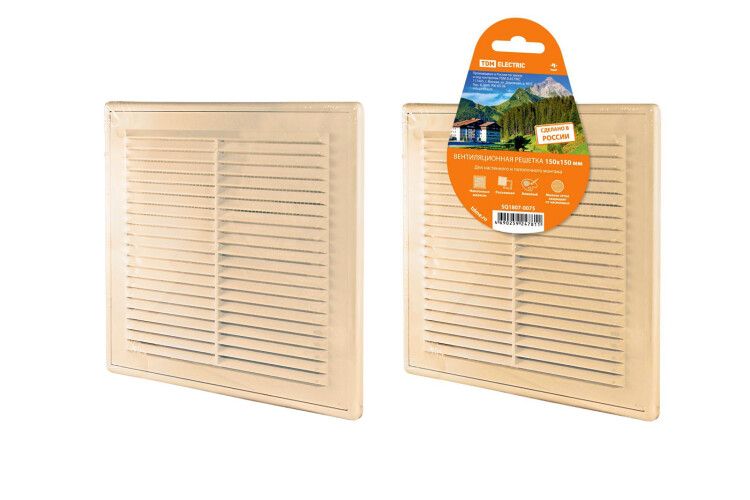 - Решетка разъемная с москитной сеткой, 150х150, бежевая от TDM ELECTRIC совместима со всеми типами вентиляторов до 150 мм - не требует адаптеров