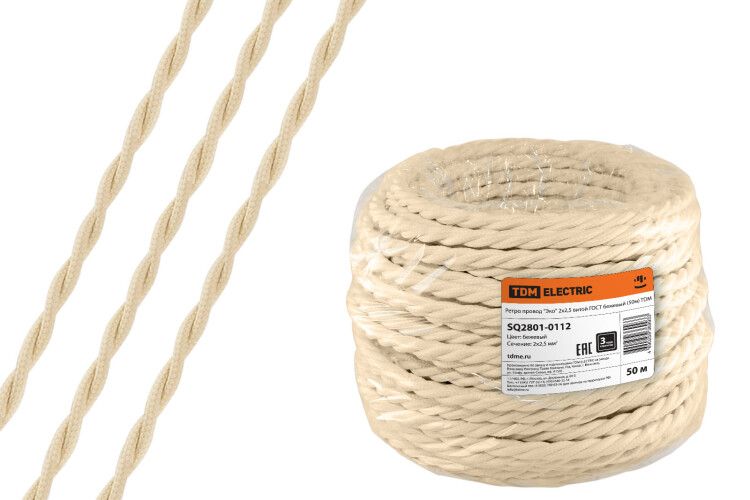 | Ретро провод "Эко" 2х2,5 витой ГОСТ бежевый (50м) | SQ2801-0112 | TDM | 06.03.2026 | Под заказ | 205,32 ₽ | м. | от 30 дней |