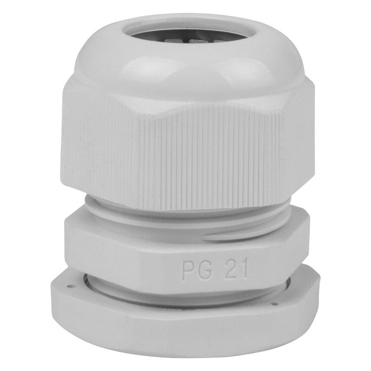 Сальник PG21 (диаметр проводника 15–18 мм) IP54 устанавливается в отверстие диаметром 21 мм с резьбой М21×1,5. Для монтажа: