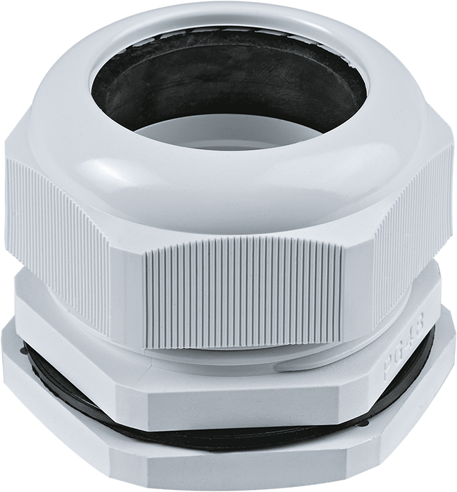 Кабельный ввод соответствует международному стандарту IEC 60423 для PG-резьбовых вводов. Материал полиамид без галогенов соответствует нормам RoHS и REACH. Применение в промышленных системах не требует сертификации отдельно - как комплектующее изделие он уже встроен в системы, прошедшие испытания по EN 60204-1. Температурный диапазон (-40…+100 C) позволяет использовать его в соответствии с классом защиты IP54 в большинстве промышленных сред.