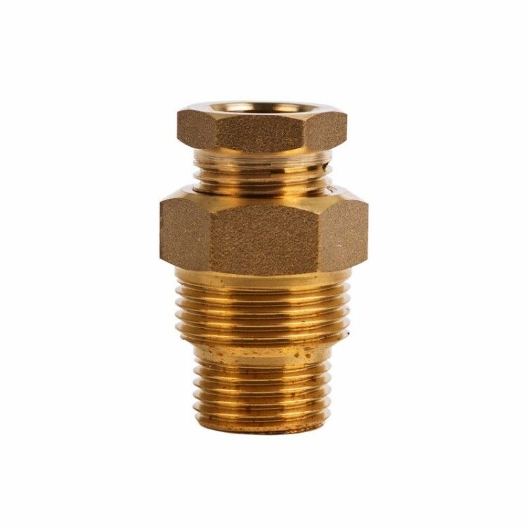 Сальник с двойной резьбой 1/2 и 3/4 для ввода кабеля в трубу от PROconnect (арт. etm51-0610-2) предназначен для герметичного ввода кабеля в металлические трубы, особенно там, где важна надёжная изоляция - например, при обогреве труб с питьевой водой. Устройство сочетает прочную латунную конструкцию, двойную резьбу и IP68-защиту, что делает его подходящим для постоянной эксплуатации в сложных условиях.