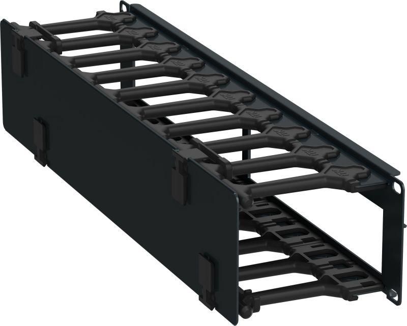 Кабель-органайзер горизонтальный 19 дюйм 2U черный используется для фиксации и прокладки сетевых кабелей в телекоммуникационных и серверных стойках. Он монтируется на передней или задней части шкафа, чтобы организовать соединения между коммутаторами, patch panel’ами и другим оборудованием. Подходит для центров обработки данных, офисных сетей, систем видеонаблюдения и других объектов с высокой плотностью кабельной инфраструктуры.