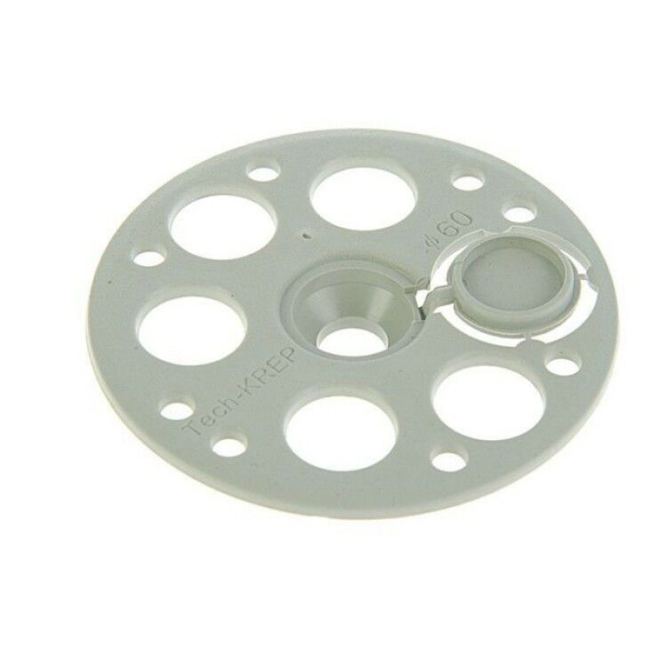 Рондоль прижимная крепеж тарельчатый D60 мм (200 шт.) от Tech-KREP - это пластиковая шайба для надежного крепления теплоизоляционных материалов к различным основаниям, применяемая совместно с дюбель-гвоздями, саморезами или шурупами по бетону.