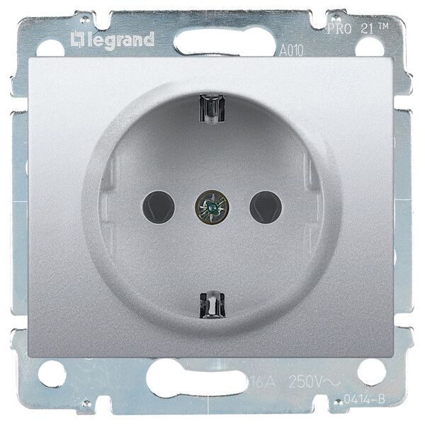 Розетка 1-м СП Galea Life 16А IP20 2P+E с заземл. защ. шторки немецк. стандарт лицев. панелью механизм алюм. Leg 771363 Legrand
