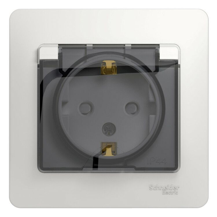 Розетка 1-м СП Glossa 16А IP44 с заземл. защ. шторки крышкой в сборе бел. SE GSL000148 APC