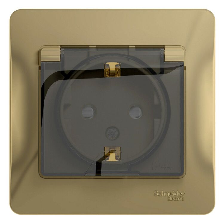 Розетка 1-м СП Glossa 16А IP44 с заземл. защ. шторки крышкой в сборе титан SE GSL000448 APC