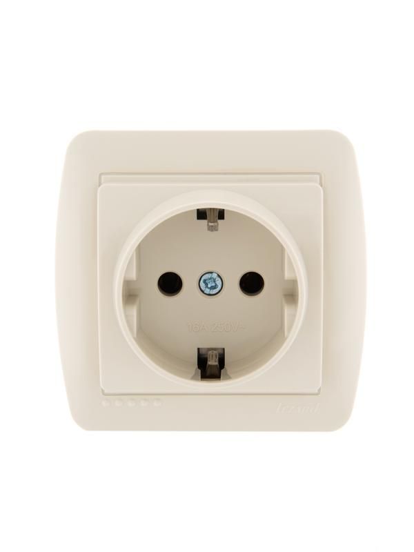 Розетка с заземлением 16А IP20 керамика крем от бренда Lezard, артикул 711-0300-122, предназначена для надёжного подключения бытовых и промышленных устройств с заземлением в условиях сухих помещений. Относится к серии DEMET и выполнена из прочного пластика с имитацией керамики.