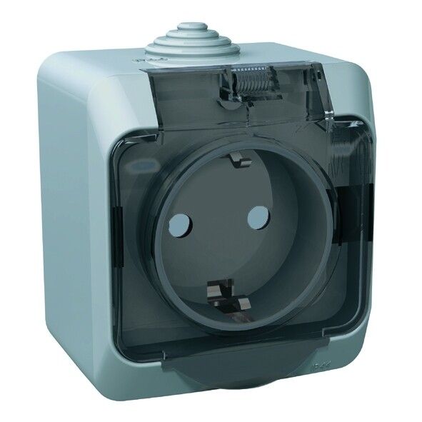 Розетка 1-м ОП Этюд 16А IP44 250В с заземл. защ. шторки крышкой сер. SE PA16-044C APC