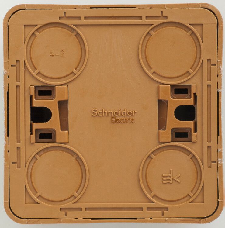 Розетка Systeme Electric этюд pa16-004t совместима с любыми стандартными наружными монтажными коробками с круглым отверстием диаметром 68–70 мм. Для монтажа требуется предварительно смонтировать подрозетник из пластика или металла, соответствующий типу установки. Кабель подключается через зажимы внутри корпуса - провода зачищаются на 8–10 мм. Установка выполняется с помощью двух винтов на задней стенке. Обязательно соблюдайте полярность: L - фаза, N - ноль, ⏚ - заземление.