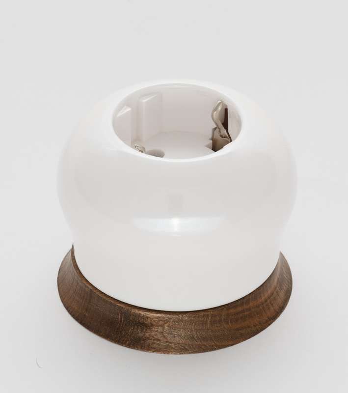 Розетка 1-м ОП Фаберже 16А IP20 ретро с заземл. круглой рамкой Винтаж перламутр. Bironi B2-101-010/18
