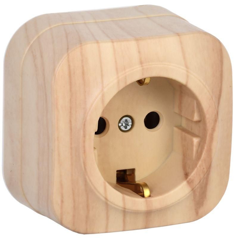 Розетка 1-местная наружная с заземлением и защитным контактом 16А сосна от IEK (ИЭК), артикул erh11-k34-16, предназначена для надёжного подключения бытовых и профессиональных устройств в условиях открытой установки. Продукт из серии GLORY сочетает функциональность, прочную конструкцию и декоративный имитационный дизайн под натуральное дерево.