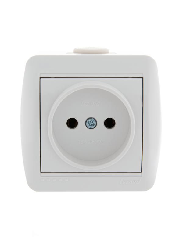 Розетка 1-местная открытого монтажа 16А без заземления керамика белая Lezard 710-0200-121 - это надёжный силовой контакт для постоянного подключения бытовых и промышленных устройств без необходимости заземления. Подходит для установки на стену в помещениях с нормальной влажностью, где важна устойчивость к перегреву и механическим нагрузкам.