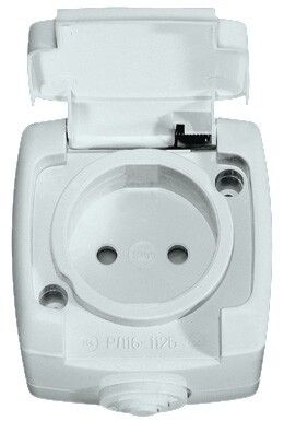 Розетка 1-м ОП Рондо 10А IP44 250В без заземл. защ. шторки бел. SchE RA10-125B-BI APC