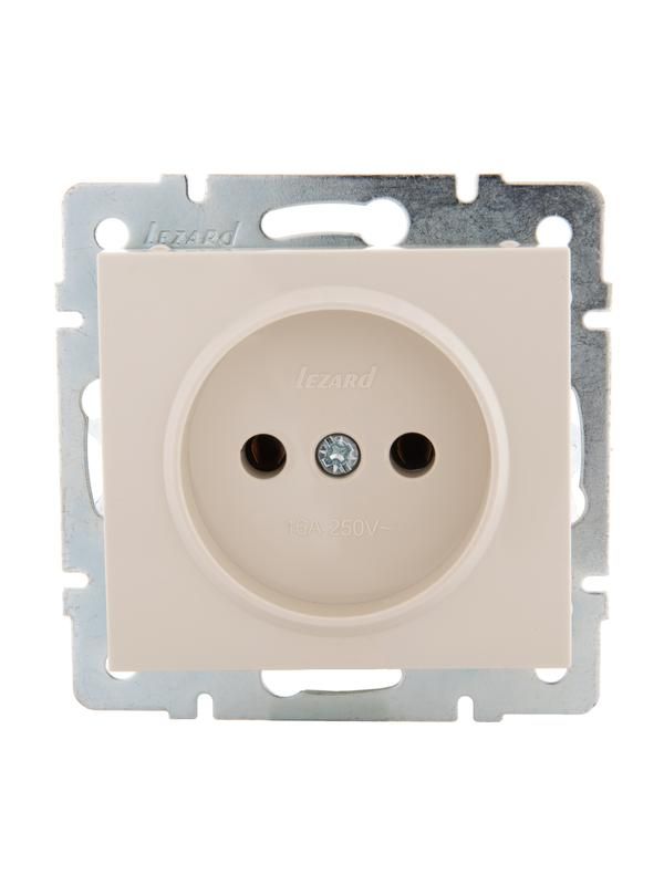 Розетка Lezard 703-0388-121 - однопостовая силовая розетка на 16 А, 220 В, с керамическим механизмом и кремовым корпусом из поликарбоната. Подходит для скрытой установки в помещениях с умеренным климатом, где не требуется заземление. Надёжна для постоянного подключения бытовых приборов и оборудования.
