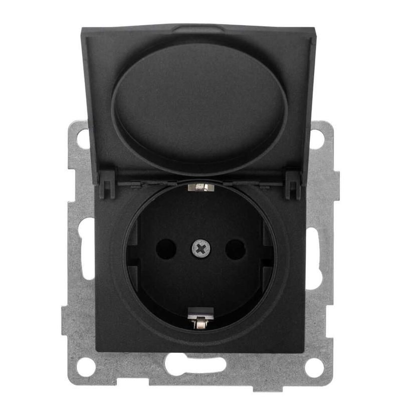Розетка однопостовая Bravo с/з с з/ш и крышкой, механизм, 16А, 250В, графит - С10Р91-010 GUSI