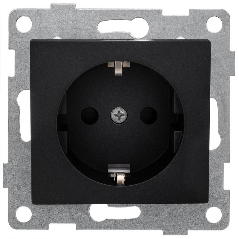 Розетка однопостовая Bravo с/з с з/ш, механизм, 16А, 250В, графит - С10Р4-010 GUSI