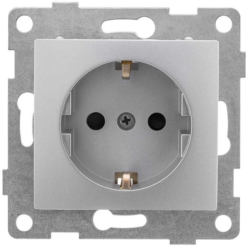 Розетка однопостовая Bravo с/з с з/ш, механизм, 16А, 250В, серебро - С10Р4-004 GUSI
