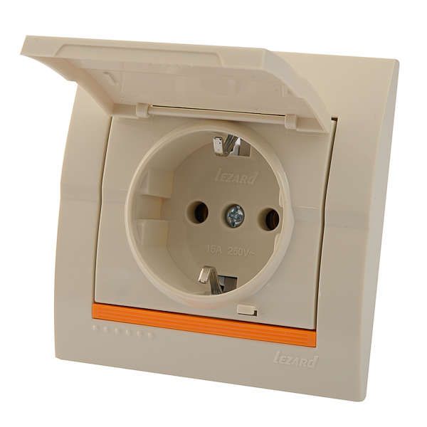 Розетка 1-м СП Deriy с заземл. защ. крышкой бакелит крем./крем. LEZARD 702-0303-123B