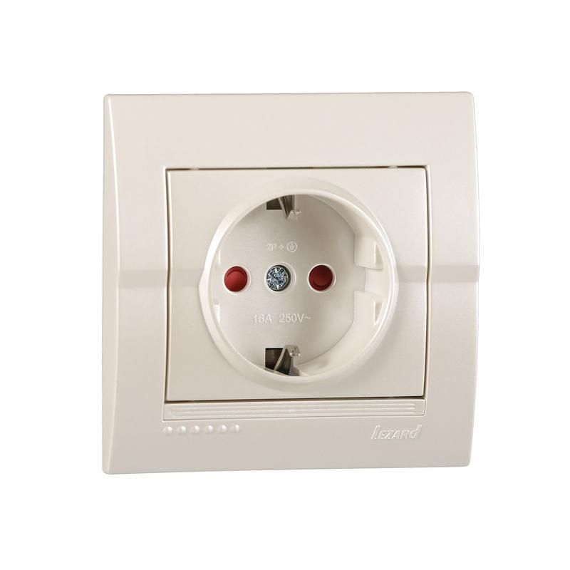 Розетка 1-м СП Deriy 16А IP20 защ. шторки бакелит жемчуж./бел. метал. LEZARD 702-3030-124B